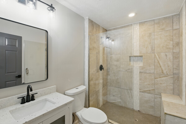 Stunningly renovated 4 bed/3 bath home featuring brand new Luxury Vinyl Plank flooring, new interior paint, new lighting and plumbing fixtures everywhere, and new stainless-steel appliances. Enter into the large living room with fireplace and open concept views to the kitchen. Kitchen offers granite, plenty of cabinets and countertops space, an island with overhang perfect for barstools, new stainless steel appliances, and eat-in kitchen. Huge Master bedroom offers an En-suite with walk in shower, double vanity with new granite, and low flow toilet. Two good sized secondary bedrooms and secondary bathroom with tub/shower combo, low flow toilet, and new granite. Large finished basement offers a den/recreation room/bonus room with sink and beverage fridge along with 4th bedroom and 3rd full bathroom with walk in shower, new granite, and low flow toilet. Out back the large deck overlooks private backyard.