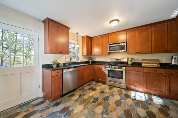 Welcome to Windfield Circle, where charm meets modern living in this beautifully updated 3-bedroom, 2-full bathroom home in Tucker, GA (Inside the Perimeter). With timeless hardwood floors that run throughout, this inviting home features a semi open-concept living space, enhanced by a cozy wood-burning fireplace in the living room that adds warmth and ambiance. From the living area, you step into the kitchen and dining area. The dining area easily has enough room for a full-size dining table and is ready for your dinner parties. The kitchen is a home chef's dream, showcasing granite countertops, natural wood cherry cabinets, and top-of-the-line appliances, including a four-zone fridge and gas stove, all accented by oil-rubbed bronze fixtures and high-end porcelain tiles. Off the dining area, we find a multipurpose space that serves as a full pantry, additional storage, and the laundry area, which is situated conveniently to the door leading to your 1-car garage. This thoughtful design maximizes every square foot. On the other side of the home, as you move down the hall, on your left, you see the first of two full bathrooms that has been renovated with sleek slate flooring, stylish bowl sink, and sparkling subway tiles that surround the soaking tub. Across the hall is the first of our two additional spacious bedrooms. The second bedroom space could also be used as an office! The primary suite includes an additional full bathroom, offering a private retreat within the home. Step outside to the custom-designed deck, an ideal spot for entertaining with built-in seating, planting boxes, and outdoor lighting. The beautifully landscaped backyard is a true oasis, boasting a terraced design with a stacked stone wall, stone bed in front, flourishing perennials, majestic maple trees, and fragrant blooming tea olives. Freshly painted exterior trim and shutters enhance the home's curb appeal, while the neutral interior paint creates a warm and inviting atmosphere. Located in a friendly neighborhood without an HOA but with an active Listserv, you're assured a sense of community and privacy. Plus, its proximity to top-rated schools, downtown Decatur, Atlanta attractions, and Stone Mountain, makes it an ideal home for everyone. This Tucker gem, a perfect blend of comfort, style, and convenience, is waiting for you to start your new story. Don't miss your chance to make it yours!