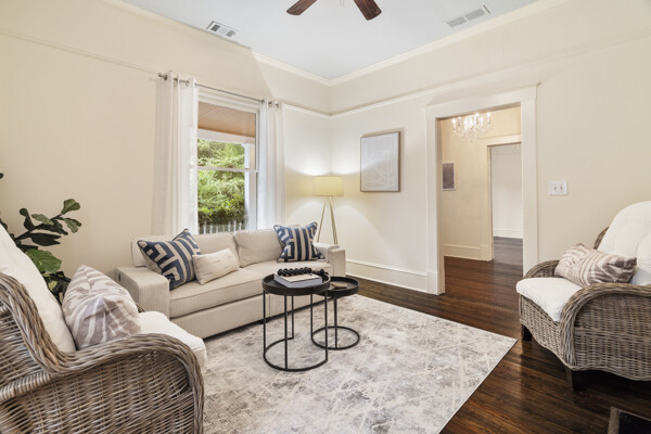 Welcome to this charming Victorian bungalow in the HISTORIC DISTRICT OF GRANT PARK, where timeless elegance seamlessly blends with modern convenience. This home offers a quintessential in-town living experience, from its inviting curb appeal to its warm and cozy interior. Unlike the many homes in the area, this home structure has not be altered. As you step onto the property, you'll be greeted by beautifully landscaped gardens and a spacious, covered rocking chair front porch with cedar wood-paneled ceilings & a fountain perfect for relaxing! Upon entering, you'll find a large foyer leading to stunning French doors. The home exudes warmth and character with its newly resurfaced original hear pine hardwood floors, soaring 10-foot ceilings, and three fireplaces. Beautiful light fixtures, generously sized bedrooms, fresh paint, and abundant windows to complete the interior. The outdoor oasis at the front of the home is ideal for unwinding after a long day, with the soothing sounds of a fountains, a koi pond, and a private small courtyard relaxation area that even has space for a TV. Plant enthusiasts will be delighted by the lush perennials surrounding the property. A small side, privately fenced side yard provides the perfect space for a small pet or a your personal garden. Additional features include a private driveway with space for two vehicles, ensuring you never have to worry about street parking, as well as a shed for additional storage, and an outdoor workspace with shelving. This home presents the perfect opportunity for the savvy buyer seeking to own a piece of Grant ParkCOs historic charm in a prime location. Ideal for someone who doesn't mind upgrades over time, appreciates the home's Victorian character, and prefers minimal yard maintenance. This gorgeous move-in ready property is just waiting for you to add your personal touch and make it your own! Located just one block from Grant Park and two blocks from the Grant Park Recreation Center and tennis courts, you'll also be within walking distance of the Beltline, the Atlanta Zoo, the Grant Park Farmers Market, and numerous restaurants in addition to a brand new Publix just a 10 minute walk away in beautiful Madison Yard!!!. Nearby dining options include Grant Central Pizza, Dakota Blue, Ziba's, Six Feet Under, Das BBQ, and numerous restaurants and much more in the newly developed Glenwood Park!! If you would enjoy living in one of Atlanta's best historic neighborhoods, walkable to coffee shops, restaurants, and parks, this home is perfect for you! Schedule a showing today!